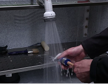 Spoel kwasten of apparatuur, verfresten worden direct opgevangen.