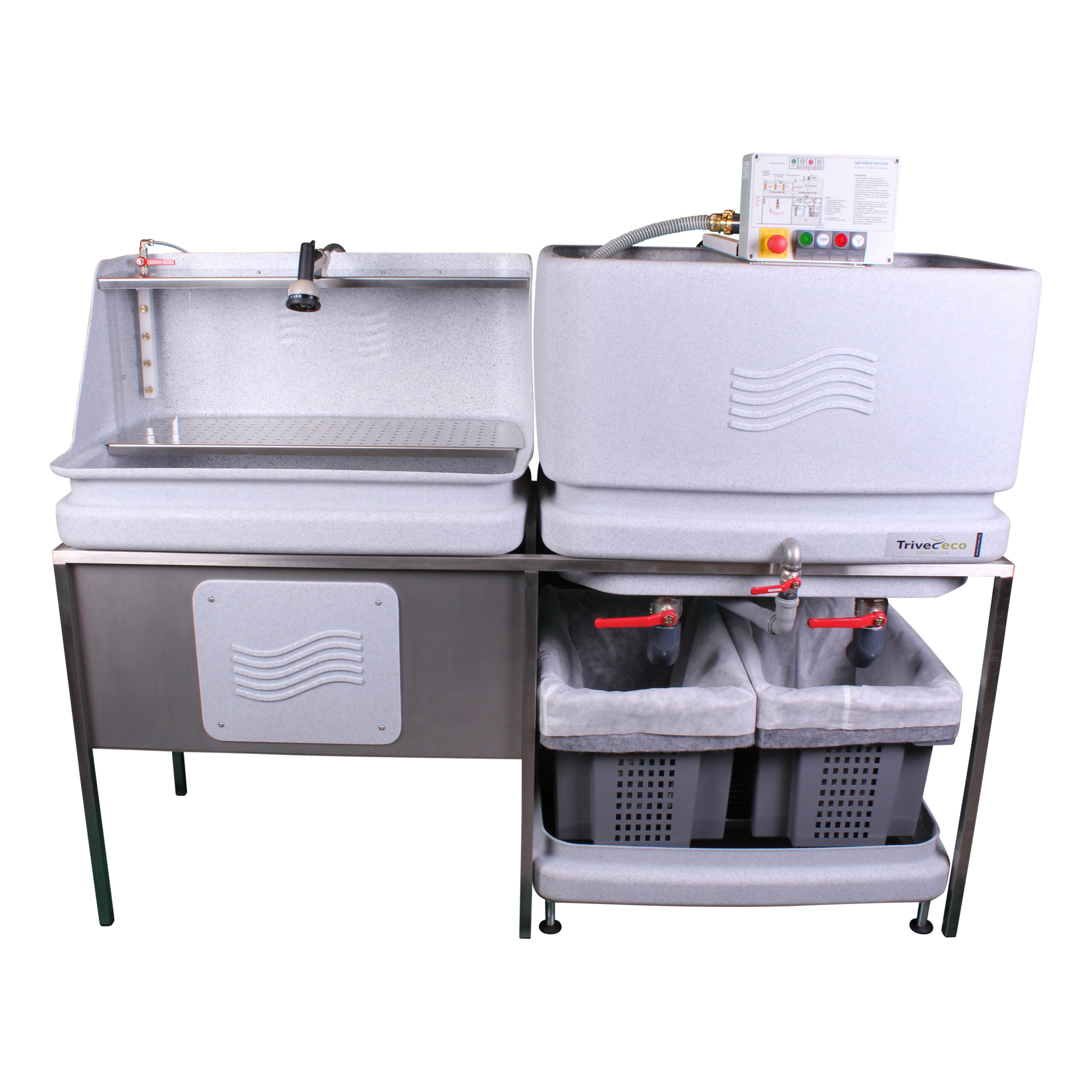De AC300 is een modulaire, semi-automatische spoelwaterinstallatie die kan worden uitgebreid met onder andere wastafels, een vuilwaterbuffer, doseerunit en filteroplossingen. De exacte specificaties zijn afhankelijk van de gekozen configuratie en de gewenste capaciteit. Neem contact op voor een overzicht van alle technische gegevens en mogelijkheden.